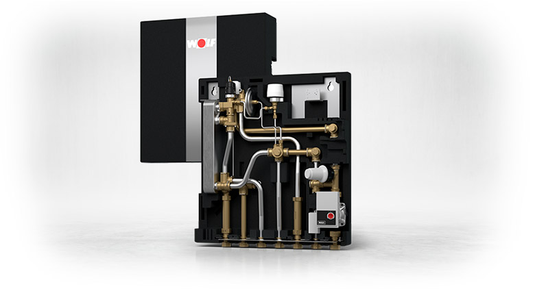 se puede conectar a diferentes generadores de calor centrales y combina el confort de un sistema centralizado con la preparación de ACS descentralizada. Sobre todo, impresiona con una temperatura constante del agua caliente gracias al controlador WOLF RatioFlow.