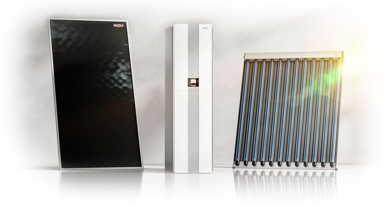 Los acumuladores WOLF se calientan por medio de un equipo de calefacción a gas o gasóleo o una bomba de calor. Además, una instalación termosolar puede calentar el agua de forma gratuita con la energía del sol en un acumulador solar WOLF.