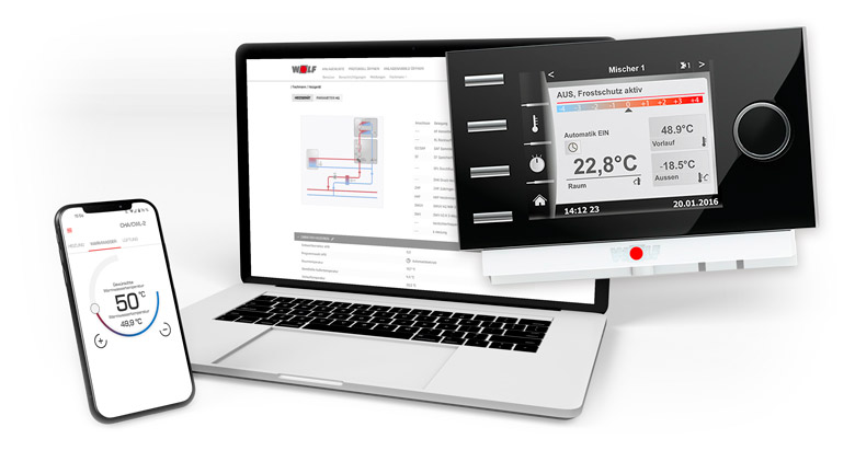 Nunca fue tal fácil, no pierda nunca el contacto con su equipo de calefacción. Todos los componentes de su equipo Wolf de calefacción interactúan y le ofrecen un manejo muy sencillo. Descubre el control personalizado con los componentes de Smarthome de WOLF.